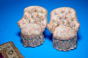 - Sofa & Sessel aus Pappe, gepolstert mit Stoffbezug